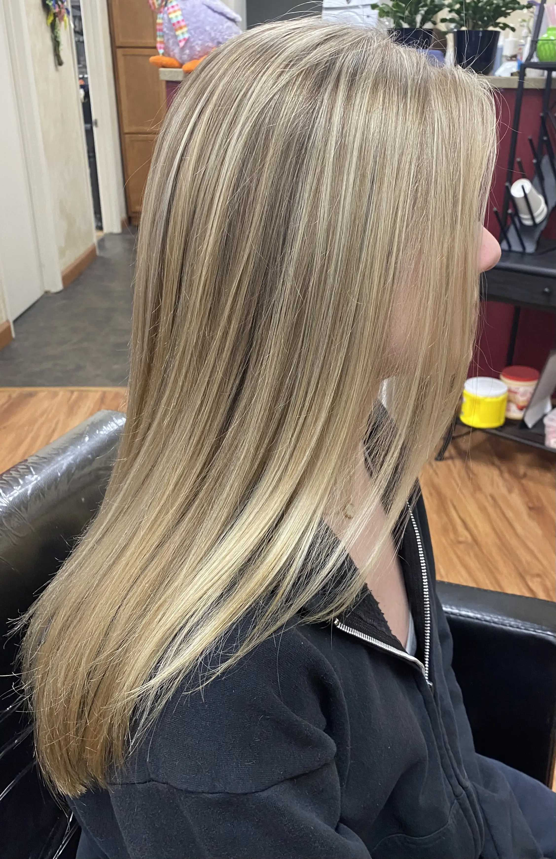 Go bold and bright with a full highlight! This service adds all-over dimension and radiance, giving your hair a luminous, head-turning look. Perfect for a sun-kissed effect or a dramatic transformation. Our full highlight technique ensures every strand pops with multi-tonal brilliance and includes a cut and blow dry. Get ready to fall in love with your mirror moments all over again! (covers a 1.5 hour foil application time, extra cost if toner is needed)